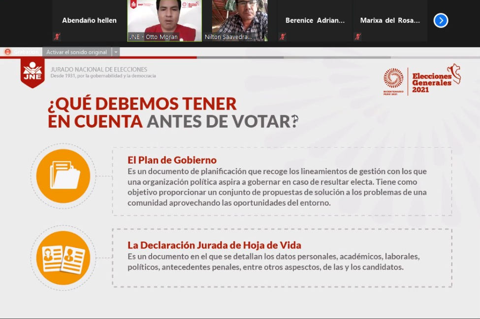 La Mesa de Concertación para la Lucha Contra la Pobreza en coordinación con el Jurado Nacional de Elecciones, convocaron a una charla informativa a las organizaciones de sociedad civil en el marco de las Elecciones Generales 2021, en virtud del compromiso suscrito el pasado martes 02 de febrero del presente año.