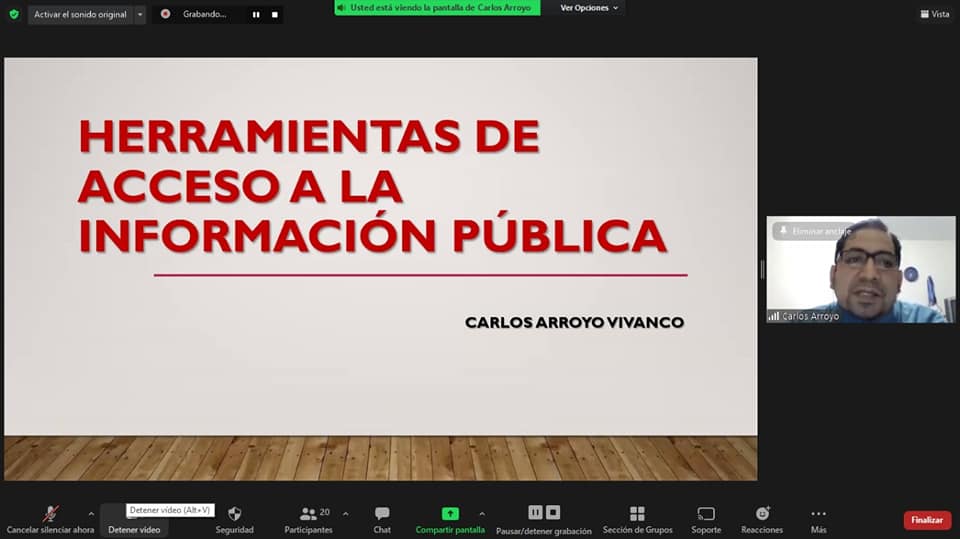 “El derecho de acceso a la información, es de toda persona a solicitar la información que requiera y a recibirla de cualquier entidad pública, en el plazo legal, con el costo que suponga el pedido, sin expresión de causa”, precisó Carlos Arroyo Vivanco.