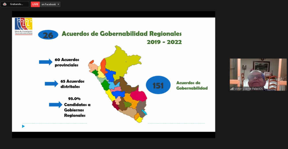 Se dio inicio con la ponencia de Rafael Silva del equipo técnico de la Mesa Nacional, quien precisó que el rol de la sociedad civil en el proceso de la gobernabilidad, a 200 años de independencia, se evidencia una vez más la necesidad de escuchar a los actores invisibles en el desarrollo de nuestro país, manifestándose de diversas maneras, asimismo señaló que las zonas más pobres del país aún no han sido escuchados en todos estos años, fundamentalmente del sector rural, e indicó que es ahí donde ha cobrado un significado importante en la actual coyuntura, evidenciando la brecha de desigualdad existente en los diversos territorios del país y el crecimiento de la pobreza por efecto de la pandemia de la Covid-19.