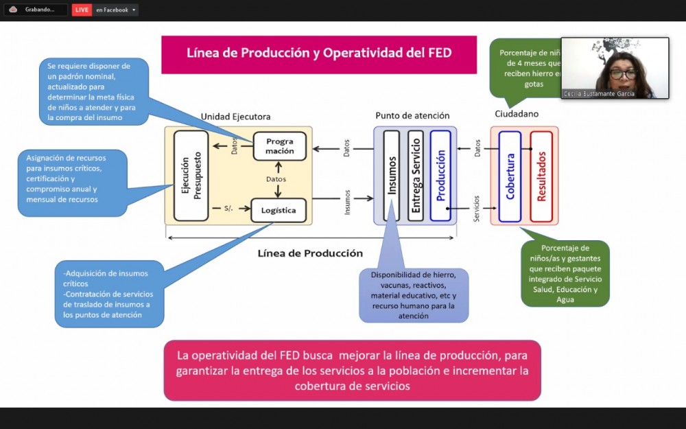 Por otro lado, Cecilia Bustamante García, coordinadora de FED, indicó que en el marco de la Política Nacional de Desarrollo Infantil Temprano y la gestión territorial, es una herramienta de incentivo monetario dirigido a entidades del Gobierno Nacional y Gobiernos regionales, en el marco de la ley de presupuesto que nació en el 2014, y tiene como finalidad impulsar el logro de los resultados sociales establecidos en los cinco ejes de la estrategia nacional de desarrollo e inclusión social con énfasis en el desarrollo infantil temprano, además de las metas asociadas a la reducción de la violencia contra la mujer en coordinación con el Ministerio de la Mujer y Poblaciones Vulnerables.