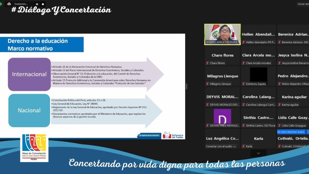La Mesa de Concertación para la Lucha Contra la Pobreza de Piura en coordinación con la Defensoría del Pueblo realizaron la charla informativa “Derecho a la Educación y Desarrollo Integral” que tuvo como objetivo dar a conocer los alcances del derecho a la educación, así como los procedimientos de denuncia ante la afectación del mismo.