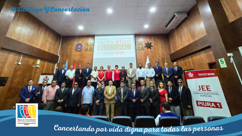 Piura, 29 de enero de 2026.– En el marco de las Elecciones Generales 2026, la Mesa de Concertación para la Lucha contra la Pobreza (MCLCP) de Piura y las organizaciones políticas que participan en la contienda electoral suscribieron el Pacto Ético Electoral, iniciativa promovida por el Jurado Nacional de Elecciones (JNE), con el objetivo de fortalecer una campaña basada en la transparencia, el respeto y el debate de propuestas.