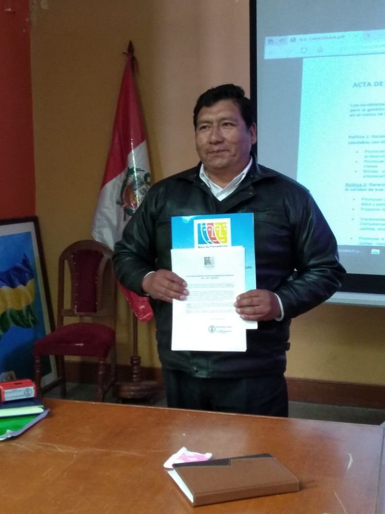 En el marco de la sesión ordinaria del Comité Ejecutivo Provincial de Candarave presidida por la coordinadora, JAmalia Perca Santos, el alcalde de la Municipalidad Provincial, Rodolfo Nina Yufra procedió a la firma del Acta de Ratificación del Acuerdo de Gobernabilidad 2019-2022.