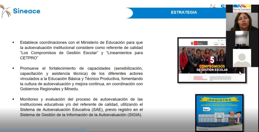 3. Ponencia “La autonomía y la autoevaluación de las II.EE.” a cargo de Angela Reymer Morales, directora de Evaluación y Acreditación de Educación Básica y Técnica Productiva del Sineace.