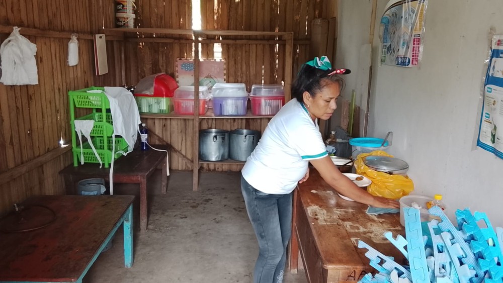 En la IE N.° 65177 se constató que la infraestructura de madera ha sido severamente afectada por las lluvias, generando filtraciones en techos y paredes, además del deterioro del mobiliario. También se identificó la falta de espacios adecuados para la preparación y almacenamiento de alimentos, así como la carencia de ambientes para la ampliación de aulas.