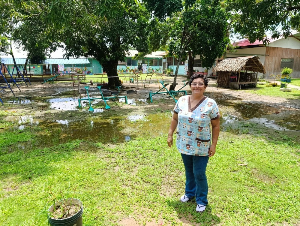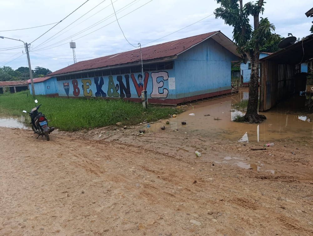 La visita a la I.E. 64836, institución de educación primaria bilingüe, reveló un panorama preocupante debido a las condiciones climáticas. Gran parte del terreno se encuentra inundado, situación que se agrava en el nivel inicial, el cual está totalmente anegado.