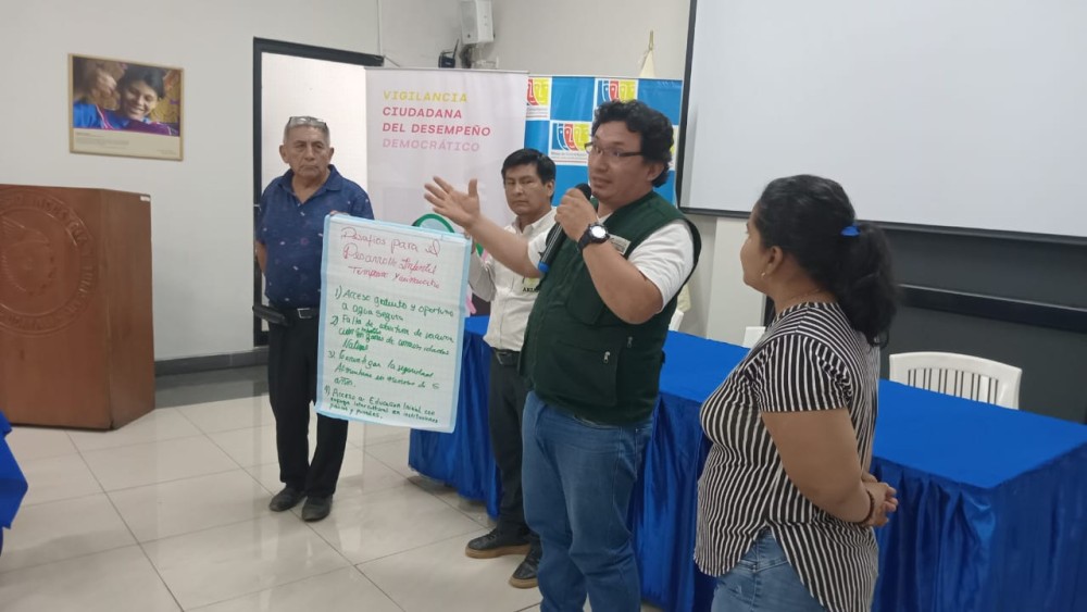 Posteriormente se realizó la capacitación sobre el acceso a la página amigable del MEF y la consulta amigable sobre el presupuesto público a nivel nacional, regional, local y por departamentos; así como en la actualización de planes de desarrollo concertado, rendición de cuentas y otros procesos. Finalmente los grupos de trabajo hicieron sus propuestas y recomendaciones para mejorar la calidad del gasto público, promover proyectos productivos, de agua y saneamiento básico, saneamiento físico legal, disminución de la anemia y embarazo adolescente.