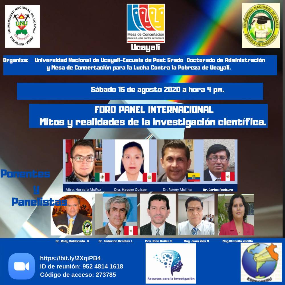 El Foro Panel Internacional "Mitos y Realidades de la Investigación científica fue organizado en alianza entre la Mesa de Concertación para la Lucha Contra la Pobreza de Ucayali y la Escuela Superior de Profesionales del Perú (ESPROPERU).