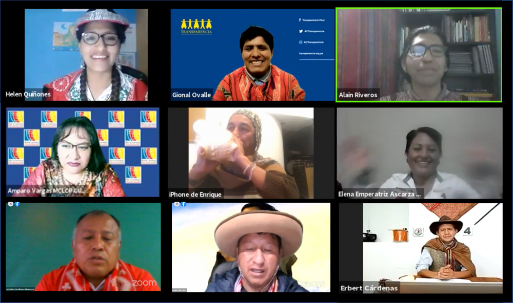 Evento virtual Llaqta kamachiy munaqkunawan rimanakuy destacó por el dominio del “Runasimi” antiguo idioma de los Incas, organizado por la Mesa de Concertación para la Lucha contra la Pobreza, el Consejo Regional de Pueblos Originarios, el Jurado Nacional de Elecciones y la Asociación Transparencia.